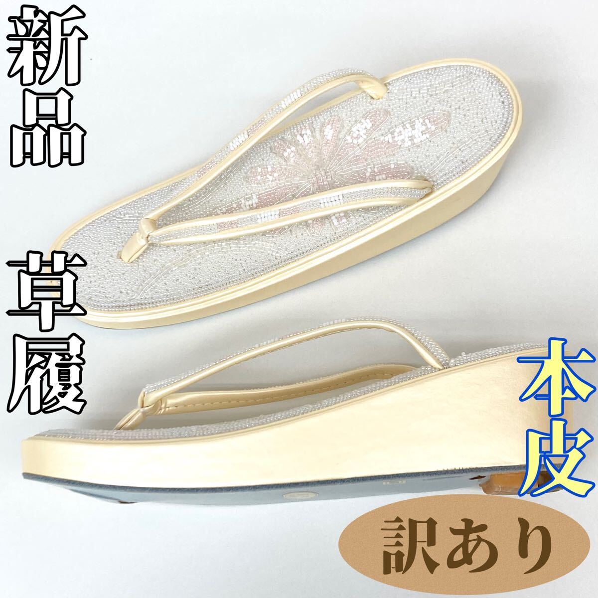 - 【着物と帯 時流】Z241094◆訳あり 新品 ビーズ草履◆本皮