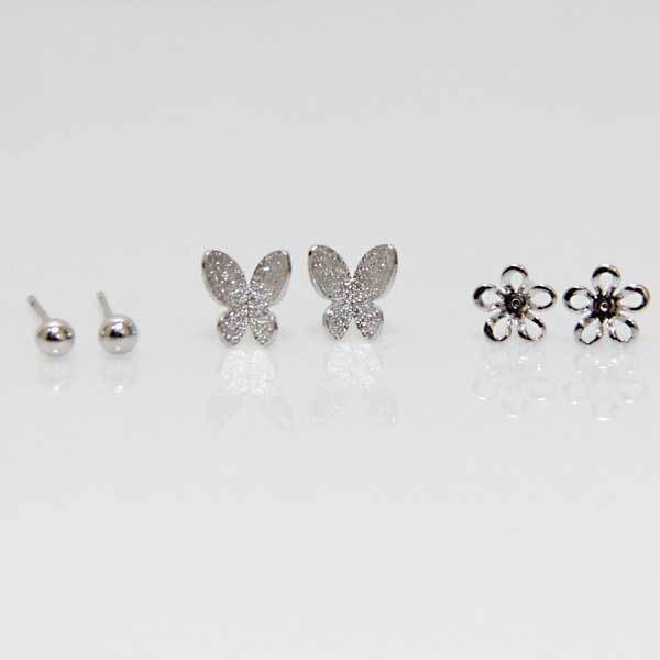 - トリプルピアス バタフライ 花 スタッズ シルバー お得 6点セット プレゼント 誕生日 お祝い mimosa
