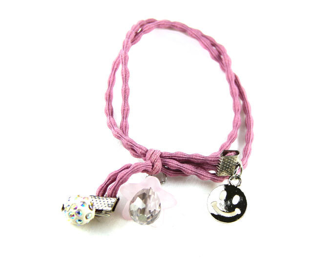 - ヘアゴム 子供 キッズ 限定 100円セール お買い得 ヘアゴム 2重ゴム 花 フラワー スマイル ラインストーン ピンク ポイント消費 mimosa
