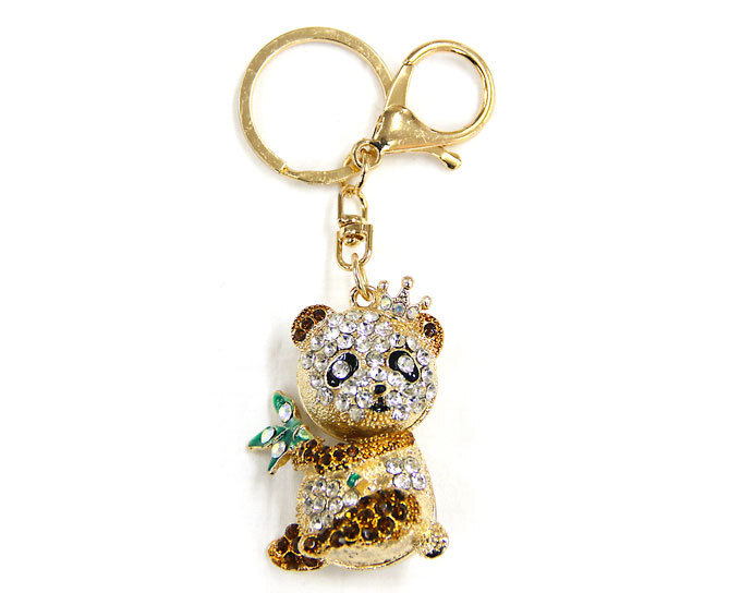 - バッグチャーム キーホルダー パンダ 笹 キラキラ 開運 かわいい アニマル ラインストーン ブラウン レディース mimosa
