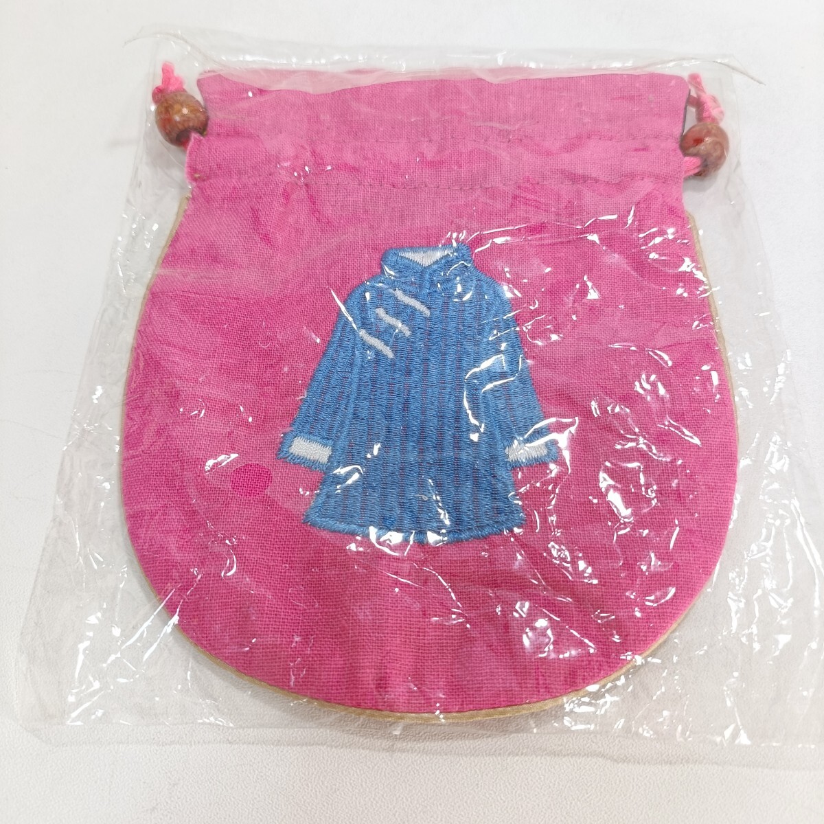 - 台湾製 刺繍入り 亜麻布 巾着袋 15.5cm×12.5cm 未使用品 [巾着 ポーチ ミニ 小物入れ 中華服]