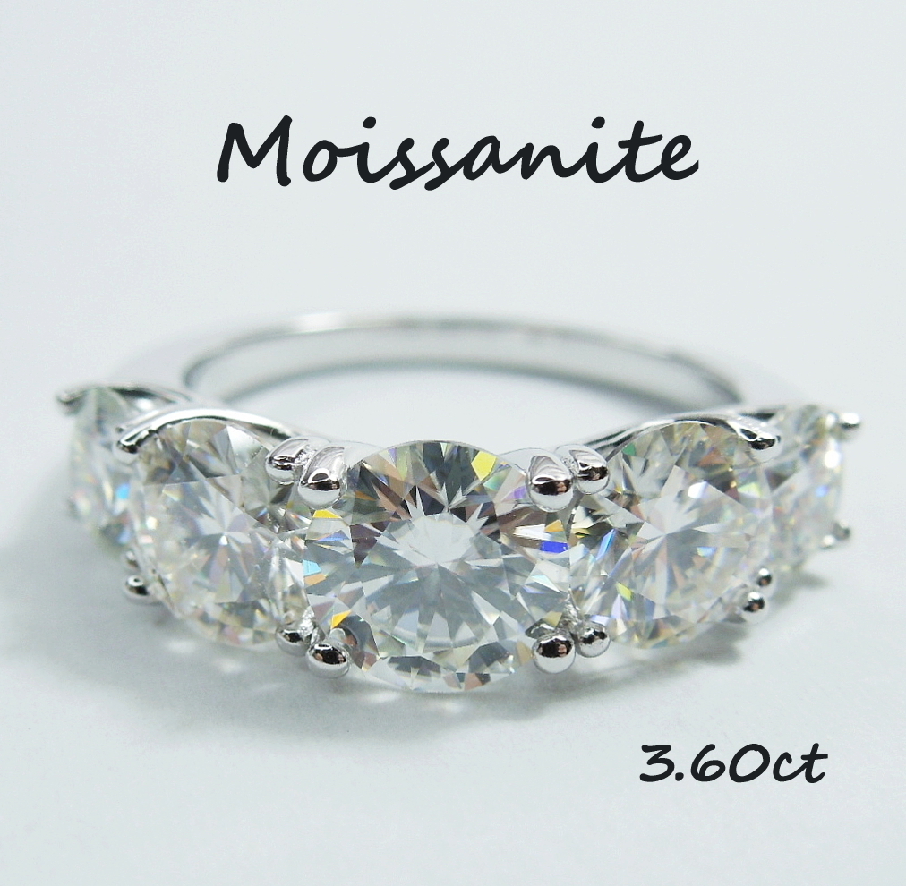 > 約14号 D 3.60ct モアサナイト 5石 リング 指輪 立て爪 3EX5石リング 立て爪リング レディース 新品 高級感 結婚指輪 台座高め
