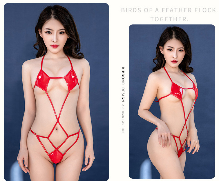> ☆送料込み☆JG-7 フリーサイズ レッド PUレザー コスプレ セクシー インナー スリーポイントビキニ ナイトクラブ 衣装 ボディスーツ