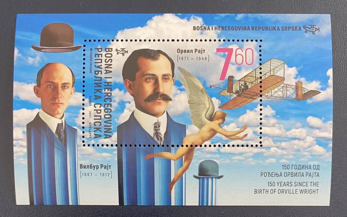 - ボスニアヘルツェゴビナ(セルビア人地区)オーヴィル・ライト生誕150年 ライト兄弟 飛行機 小型シート1種完 未使用 NH