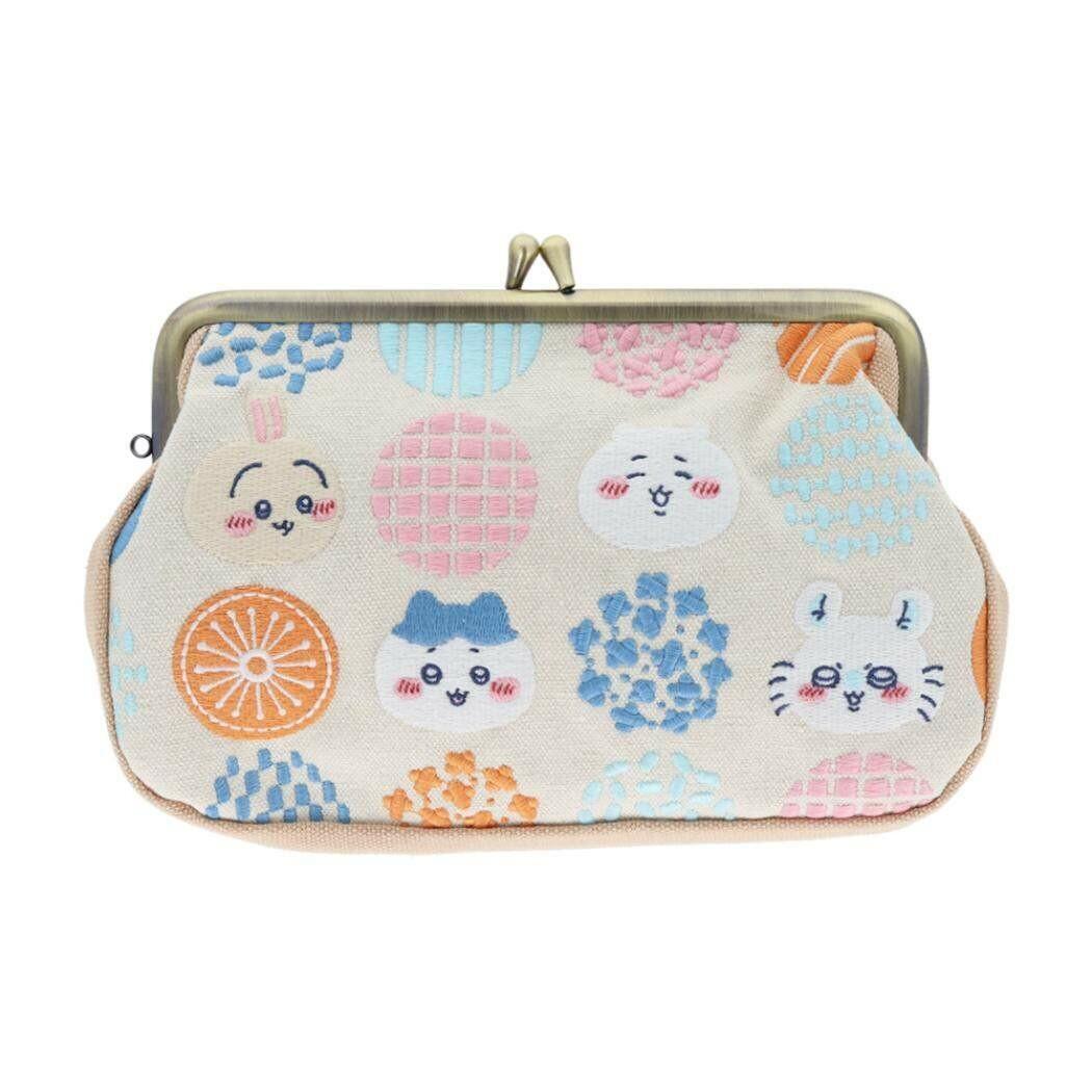 - 555* ちいかわ コスメポーチ 畳刺繍がま口ポーチ ベージュ 新品