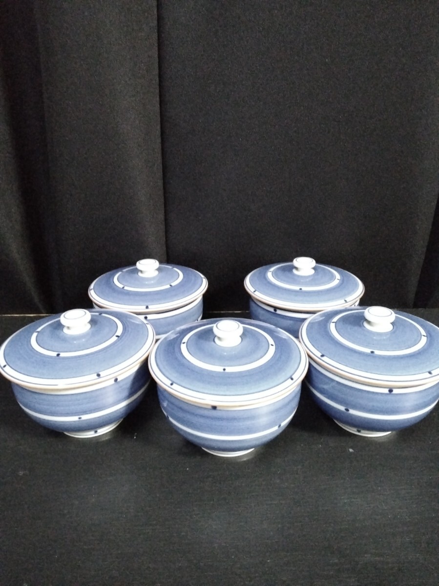 - 「値下げ」蓋付き5客セット【湯呑み】径8.5cm 高さ5cm 蓋径9cm