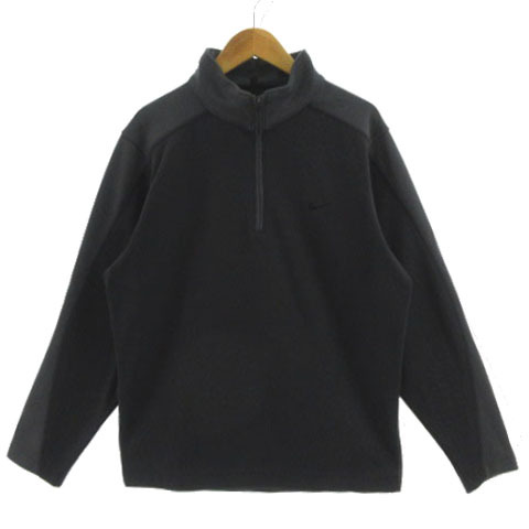- ナイキゴルフ NIKE GOLF シャツ カットソー ハイネック ハーフジップ DRY FIT ロゴ刺繍 長袖 厚手 グレー M メンズ