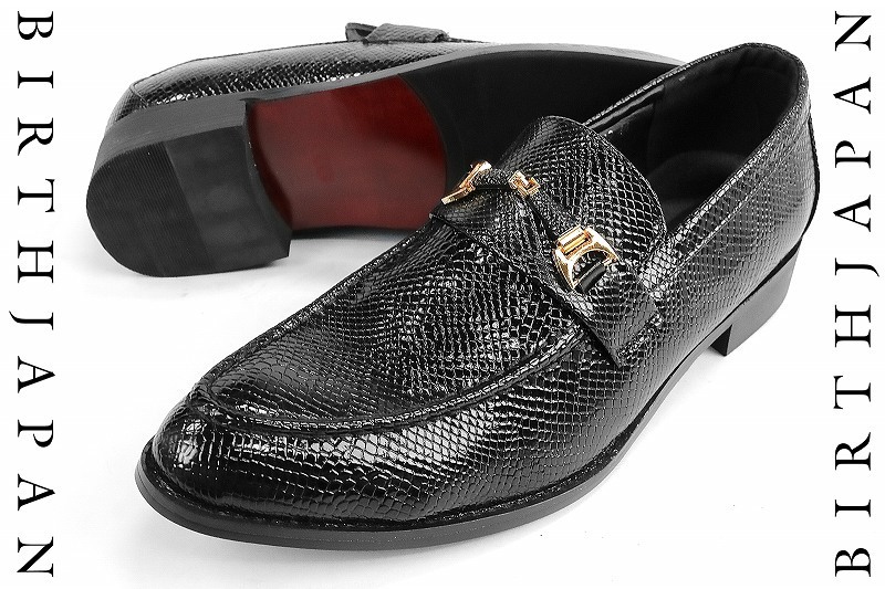 - 蛇柄 トンガリ ローファー 黒 短靴 メンズ シューズ ファッション オラオラ系 悪羅悪羅系 お兄系 メンナク ホスト 派手 105