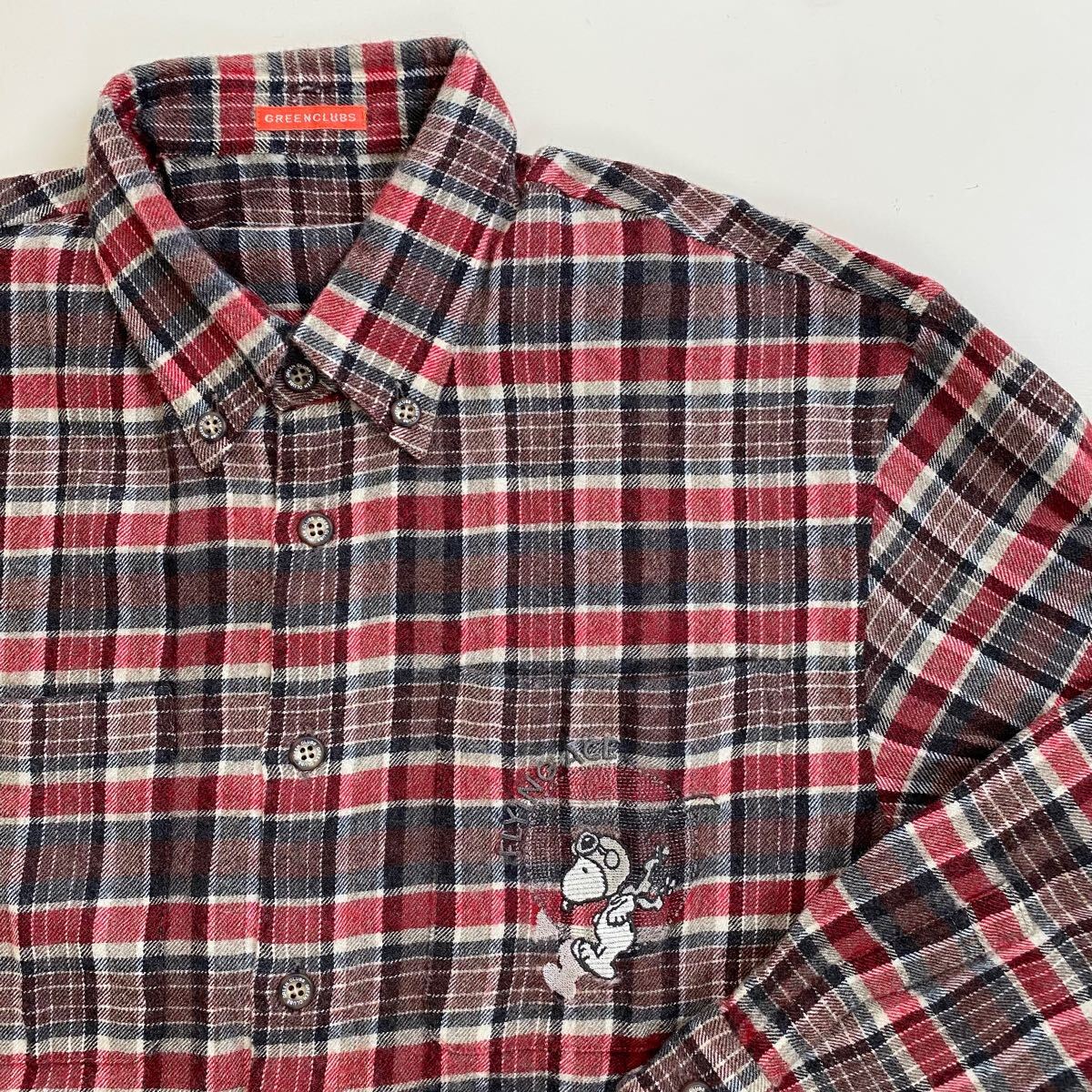 > ★ GREENCLUBS スヌーピー ボタンダウン ネルシャツ レッドブラウン サイズ4 (L位)◆ 長袖シャツ グリーンクラブ ◆W16 CれVM9-39