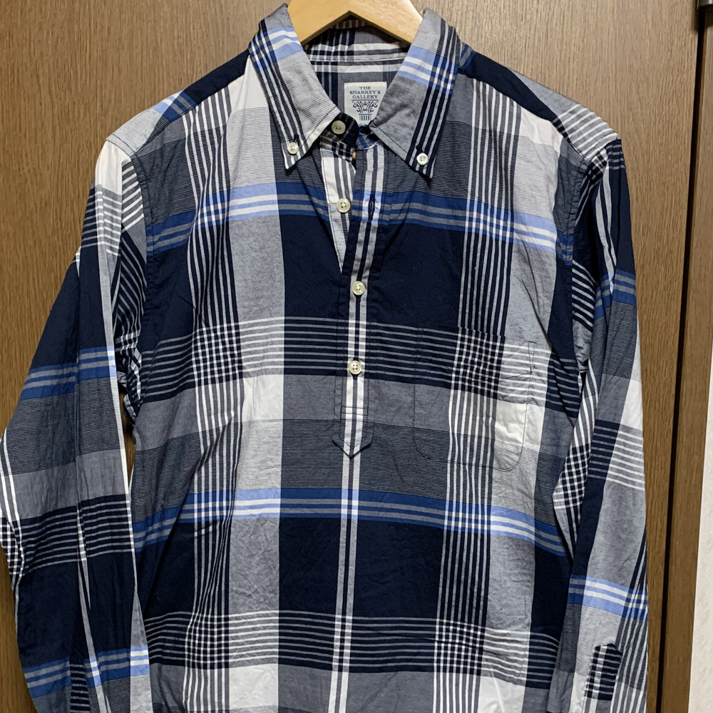 > M【THE SHARKEY'S GALLERY|プルオーバー長袖シャツ】ザシャーキーズギャラリー チェツク柄 ネイビー×ホワイト BDボタンダウン