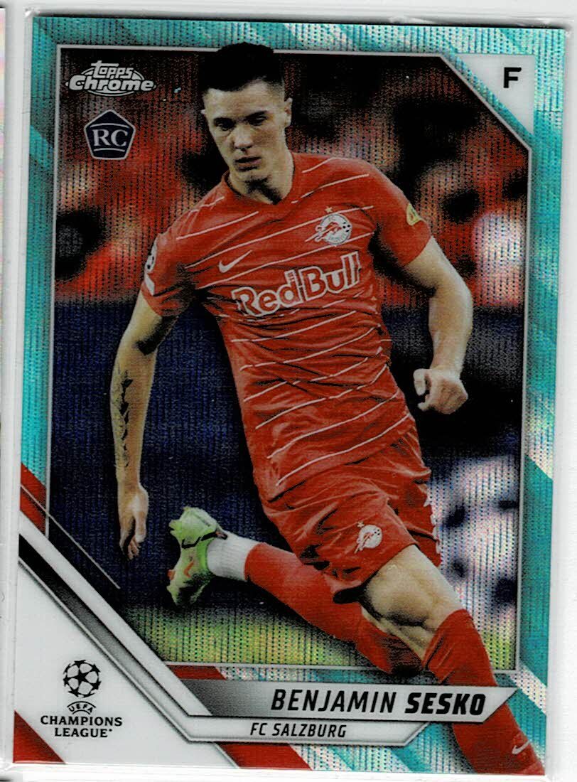 - 21/22 Topps Chrome UEFA Champions League Benjamin Sesko RC Light Blue Shimmer Refractor /199