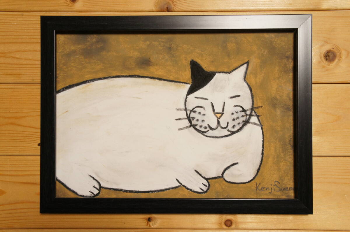 - 【ぶーちゃん】手描き 肉筆 クレヨン画 絵画 A4サイズ 760,Crayon painting, oil pastel painting, original art,ねこ,ネコ,猫