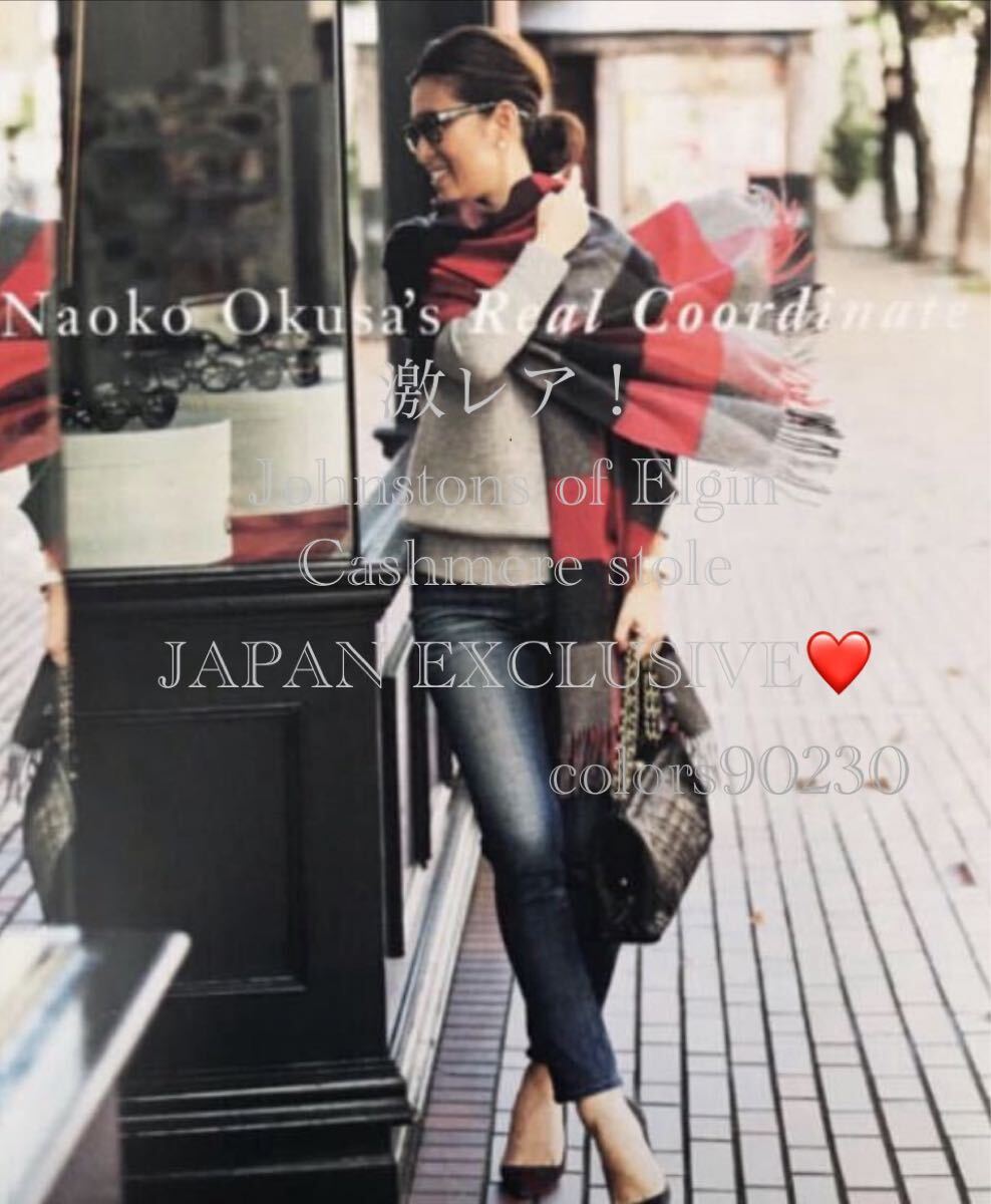 - 廃盤希少!激レア!日本別注☆未使用 ジョンストンズ カシミア ストール ブロックチェック 大判マフラー 大草直子さん坪田あさみさんご愛用