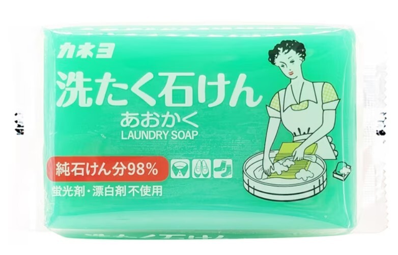 - 石鹸 カネヨ石鹸 洗たく石けん あおかく 純石けん分98% 落ちにくい汚れに 台ふきんや食べこぼしの汚れに ペット用衣類の洗たくに 150g 1個