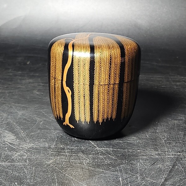 - M82 棗 茶道具 蒔絵 漆芸 漆器 塗師 蒔絵柳 金彩 蒔絵 夏目 なつめ