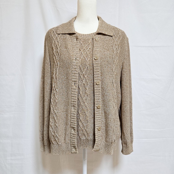 - #anc レリアン Leilian アンサンブル 9 ベージュ ニット カーディガン 縄編 レディース [921112]