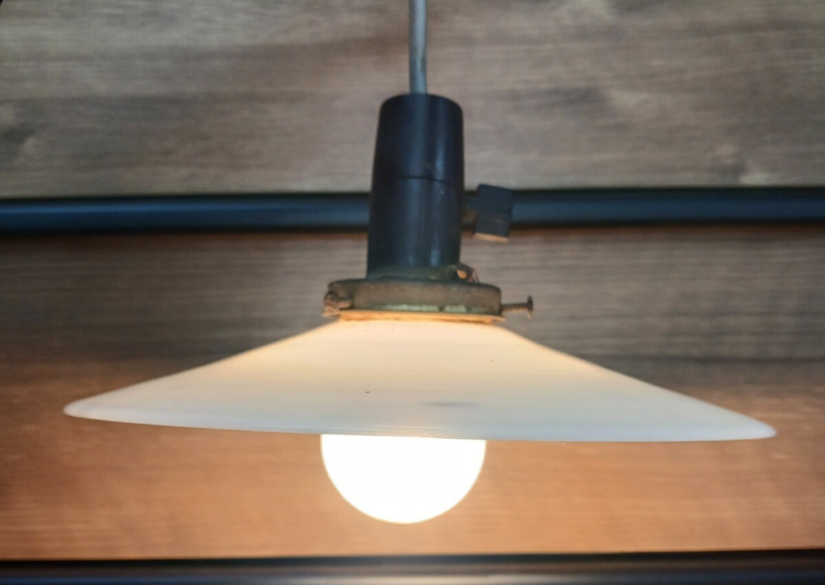 - 昭和レトロ ペンダントライト 平笠ランプ 平傘 ミルクガラス 大正ロマン 電傘 吊り下げペンダントライト アンティーク ヴィンテージ