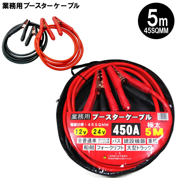 - 業務用 ブースターケーブル 極太 5m 45SQMM 450A 12V 24V 兼用 HA-5 普通車 トラック 船舶 重機 建機 バス など