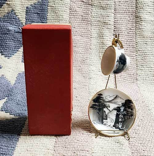 > ミニチュア ティーカップ ソーサー 黒山三滝 スタンド付 カップ コーヒーカップ 陶磁器製 昭和 レトロ 未使用