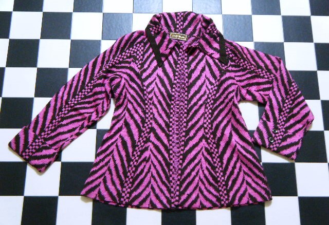 - サイトウトヨコ 斉藤都世子 ニット ジャケット れ6060 ピンク × こげ茶 美品 レターパックプラス