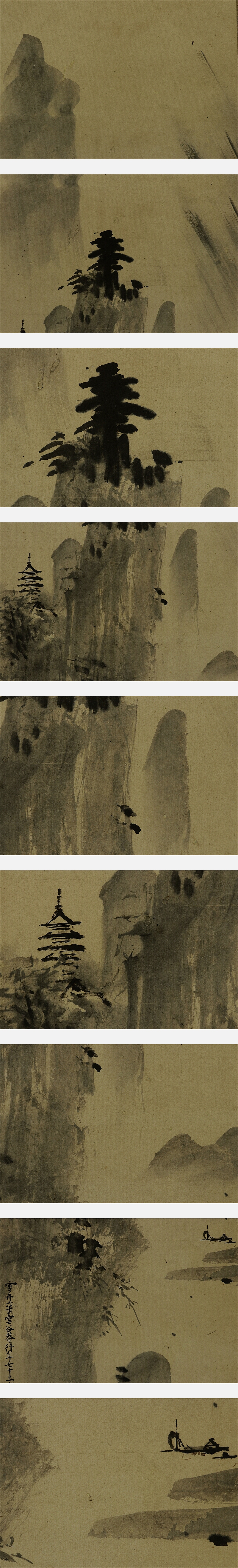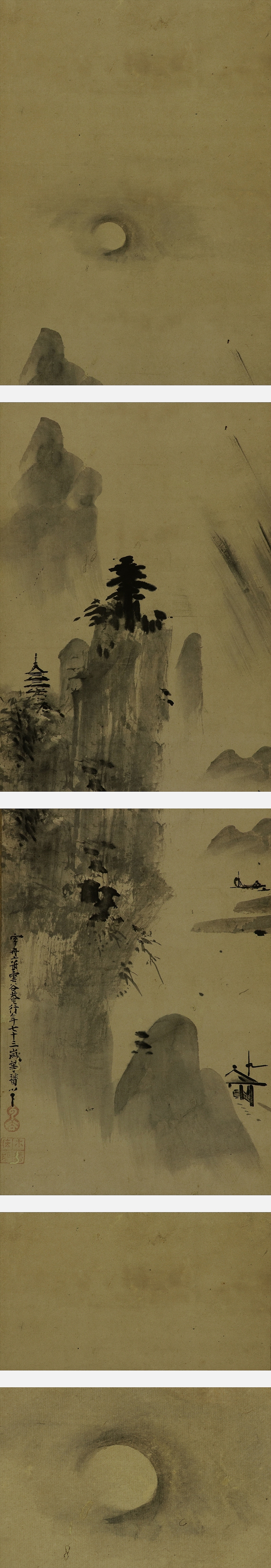 - 【模写】雲谷等ばん【水墨山水】◆紙本◆合箱◆改装済掛軸 v05067