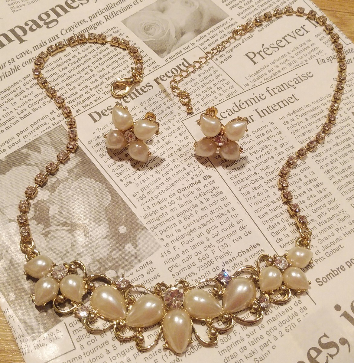 - 即決☆未使用☆2点セット☆フォーマルにも★パールビシューのお花デザインネックレス&イヤリング☆定型外180円☆