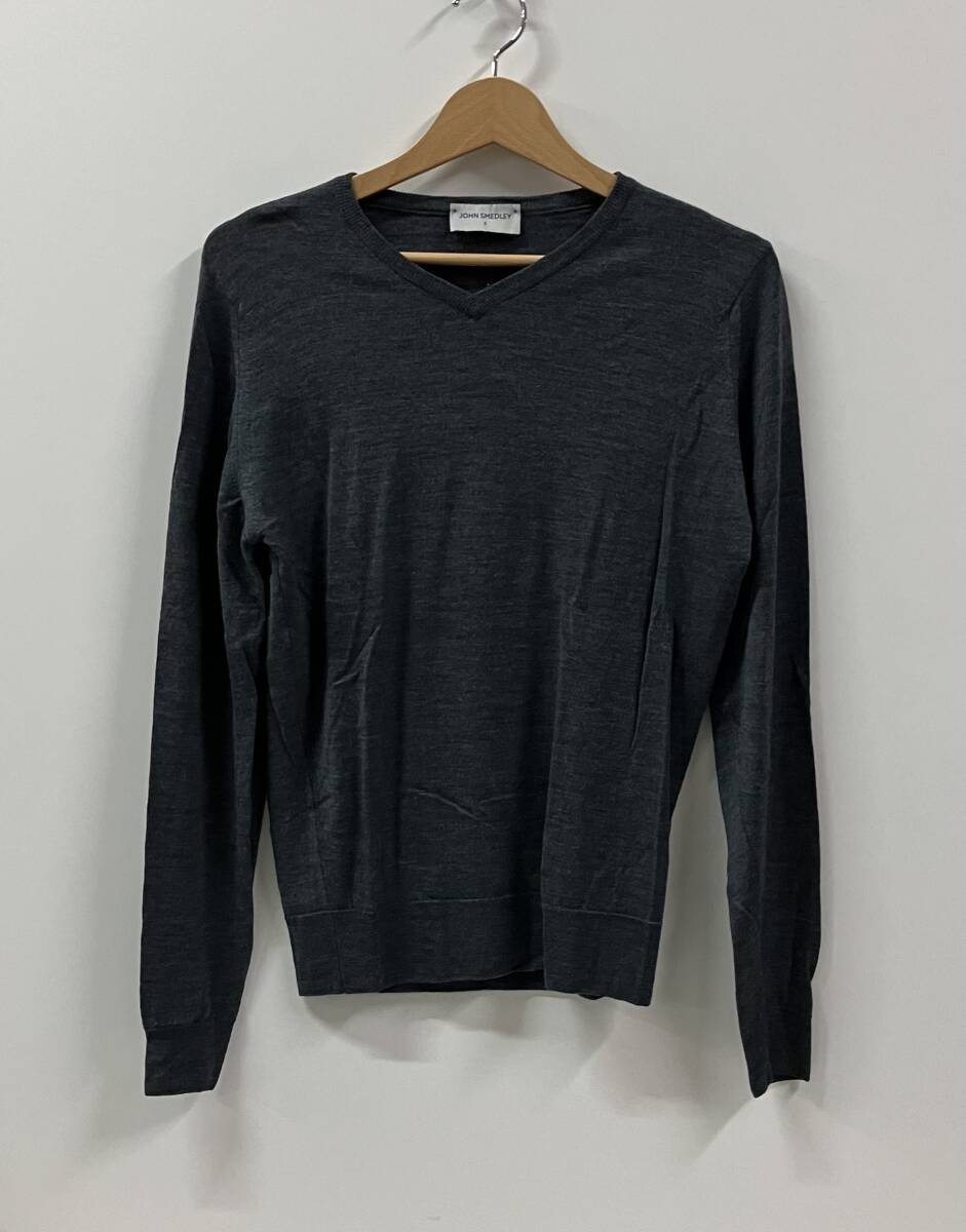 > JOHN SMEDLEY ジョンスメドレー ニット Vネック グレー サイズS イギリス製 CA45550 毛 トラッド&ベーシック