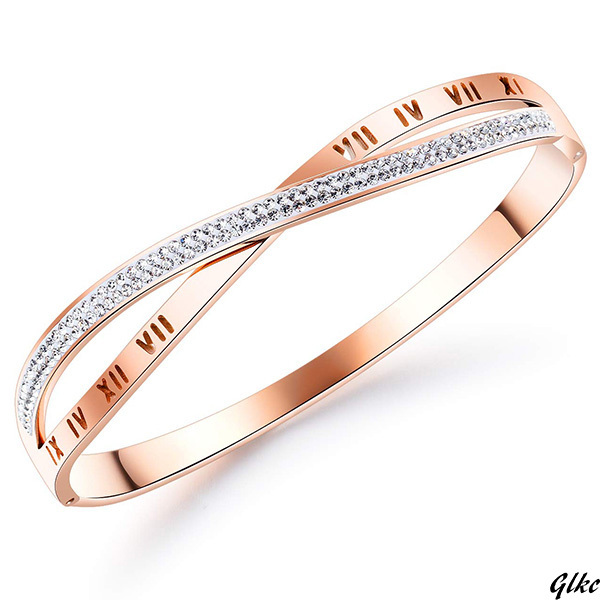 > 【シンプルでスタイリッシュな交差デザインが特徴的なブレスレット】 ピンクゴールド ジルコニアcz 交差 純チタン製ブレスレット