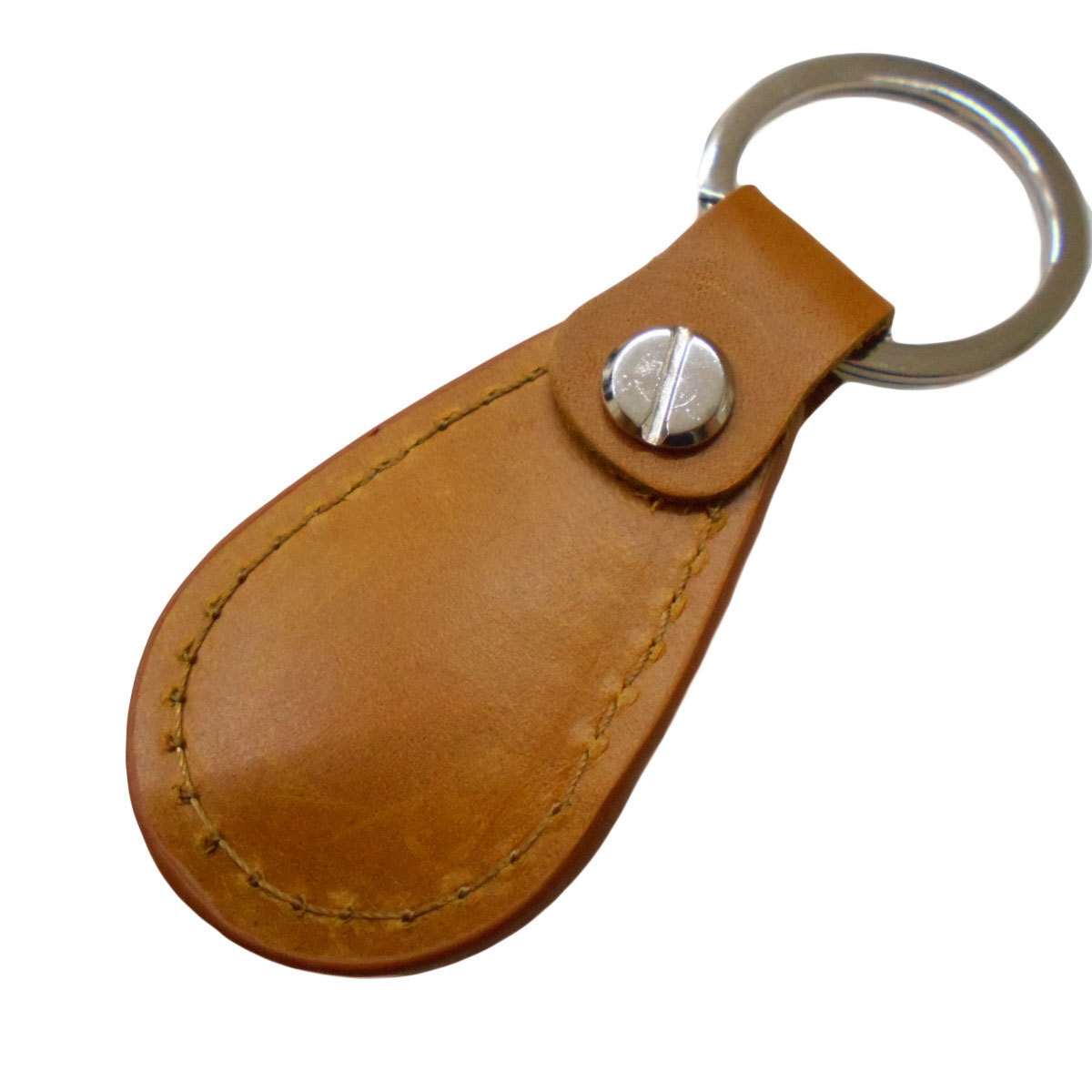 - 本革 ミニ ドロップ型 シンプル キーホルダー/キャメル/ティアドロップ レザー キーリング メンズ レディース 車 バイク