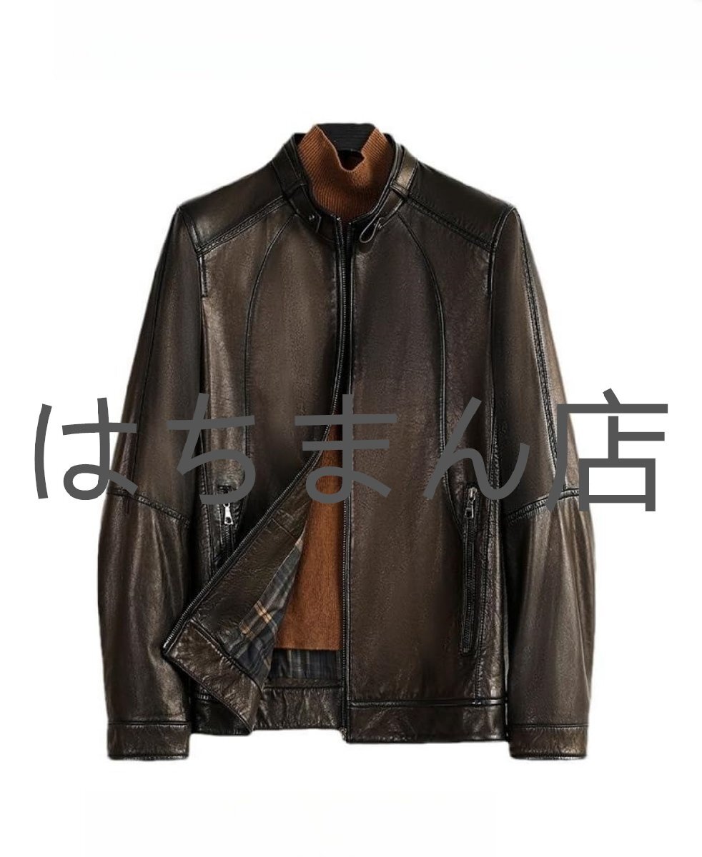 > 革ジャン メンズ 本革 レザージャケット 皮ジャン ワックス 丈夫 長持ち バイクジャケッ 本革ジャケット ブルゾン 秋冬 ブラウン L-5XL