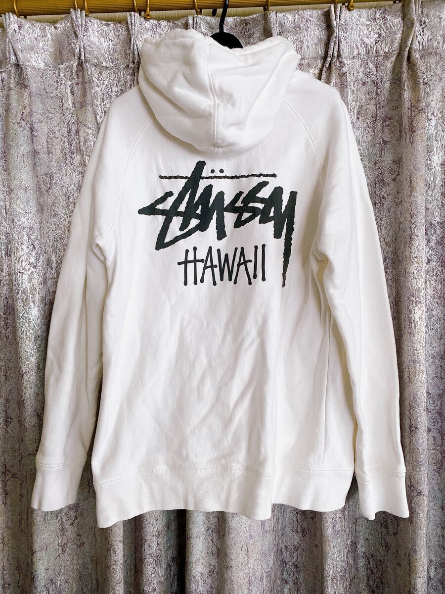 > ステューシー stussy ハワイ ホノルル 限定 HAWAII Honolulu オアフ アロハ パーカー 白 メンズS スウェットストリート レア ハワイ限定