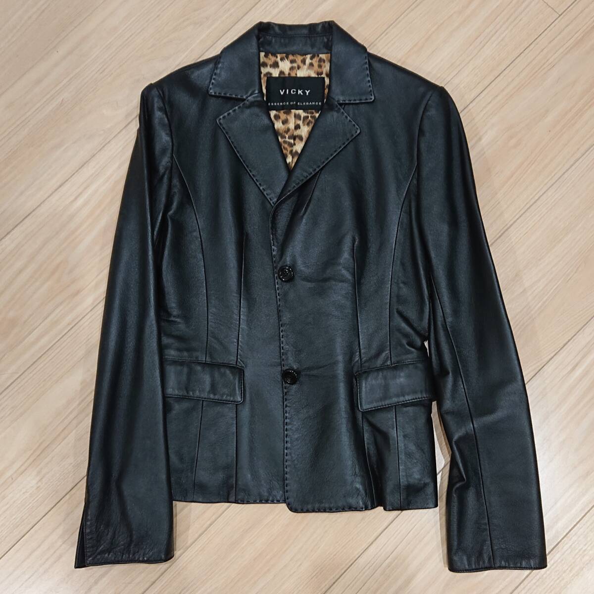- VICKY ビッキー テーラードジャケット ブレザー レザージャケット 黒 豚革 細身 Sサイズ