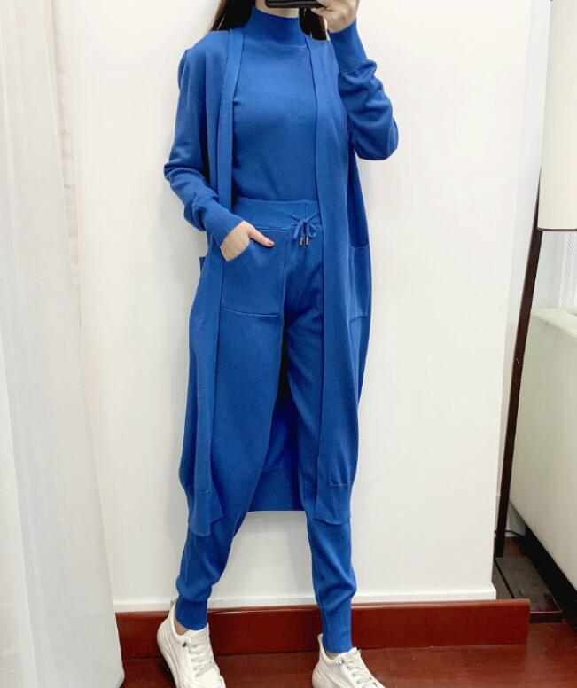 - 981 パンツスーツladiesレディース ◇ 魅惑Styleセクシー 良質 3点セット 素敵 ニット素材 ブルー