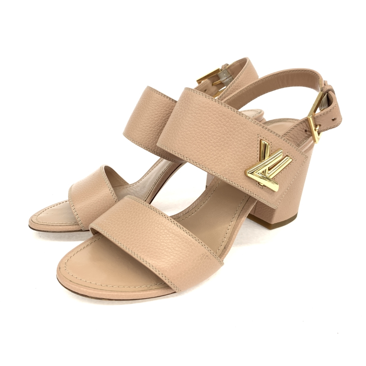 - 良好◆LOUIS VUITTON ルイヴィトン サンダル 37.5◆ ピンク レザー ツイスト LV金具 レディース 靴 シューズ shoes