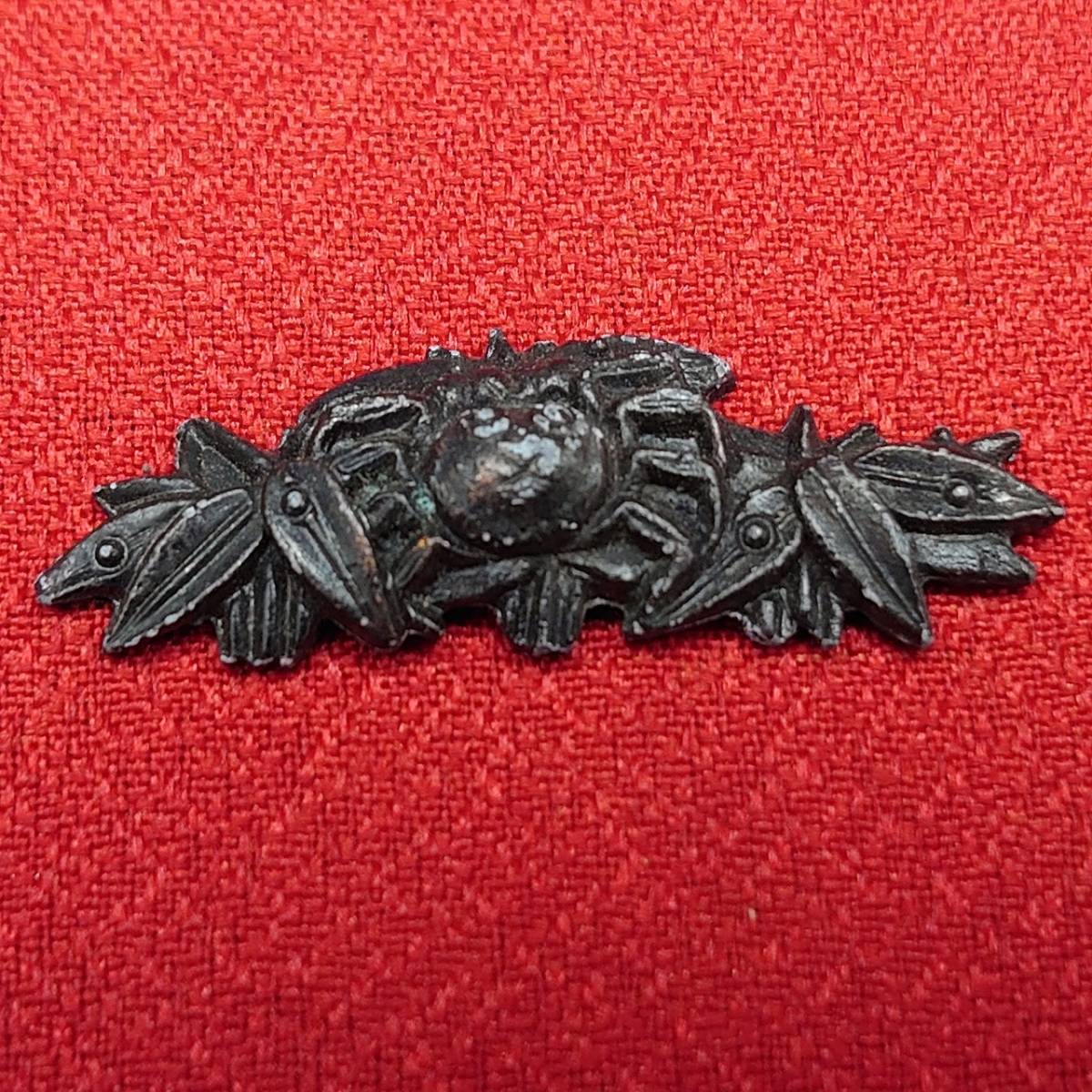 - 金具 笹と蟹 かに カニ 日本刀の部品? 刀装具 胴乱 煙草入れ 煙管入れ 骨董 36㎜ 【1868】