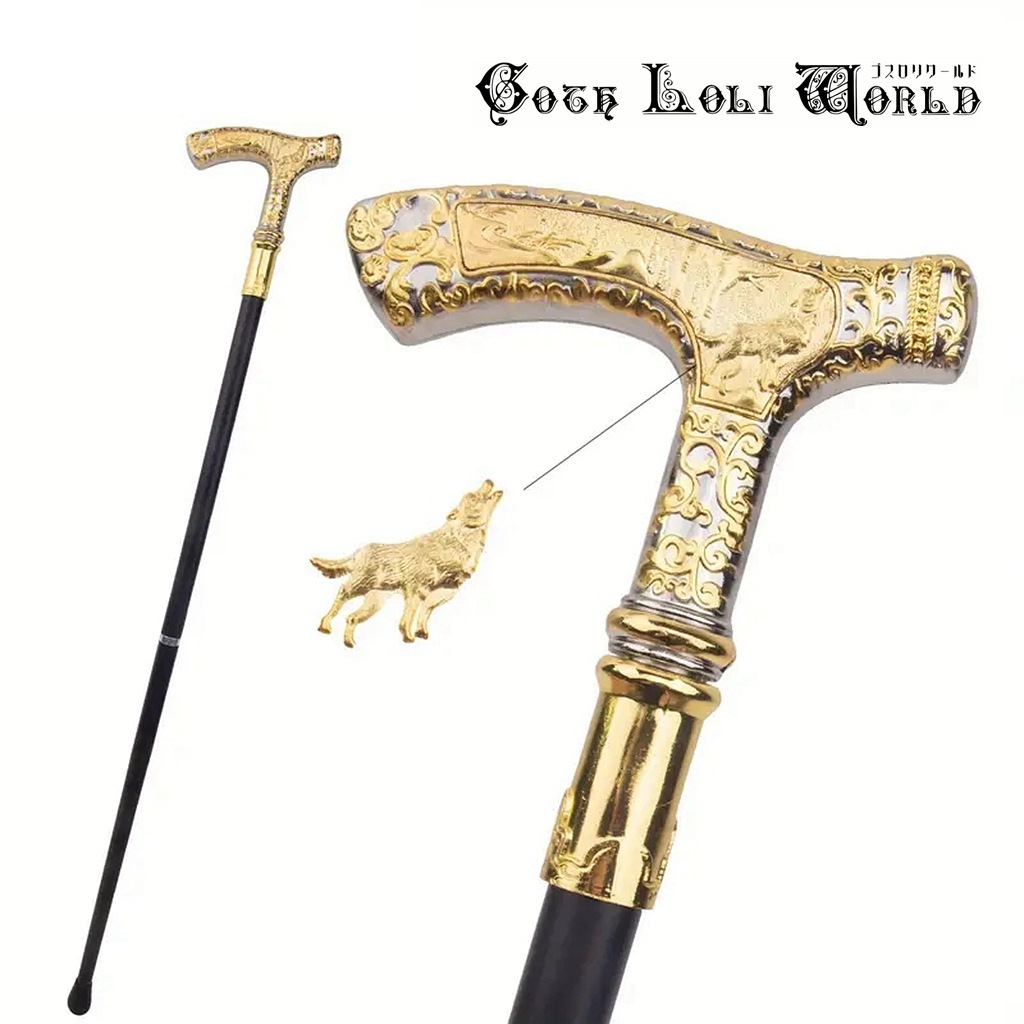 - 即納 TUE001 狼様 紳士 ステッキ 魔法 杖 つえ ゴールド 金色 高級 金属 ファッション ゴシック パンク ロック ビジュアル系 ヴィジュアル