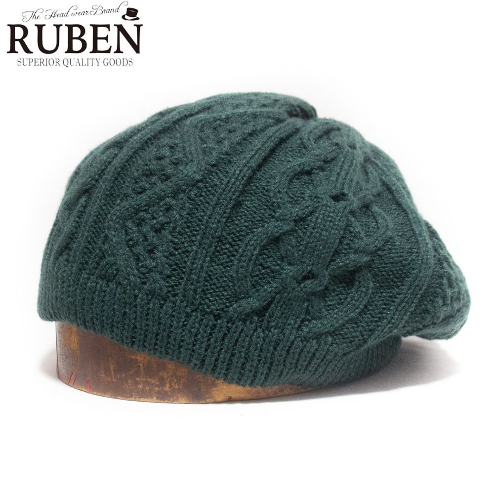 - 新品 RUBEN ルーベン ケーブルニットベレー グリーン
