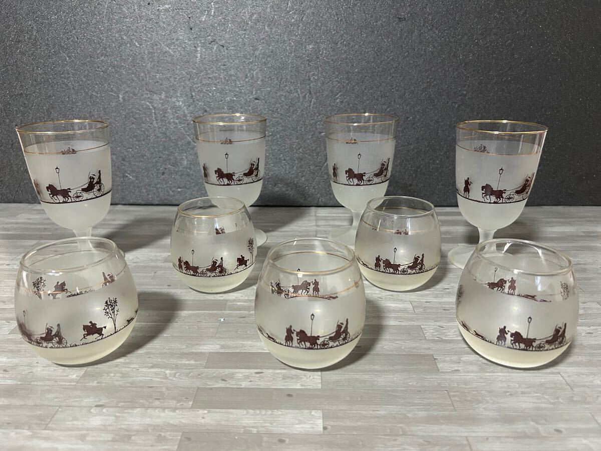 - 昭和レトロ ワイングラス ガラス 硝子 酒器 タンブラー 冷茶 コップ 金彩 金縁 レトロ オールド ヴィンテージ 馬