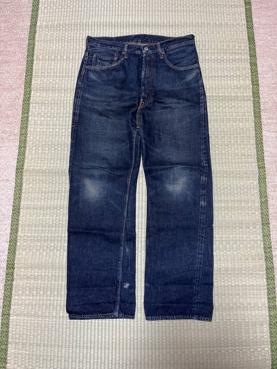 > デニム ジーンズ ユーズド加工品 ブランド画像参照 表記S 赤耳 革パッチ ボタンフライ 希少 レア 廃盤 人気 デザイン ファッション 古着