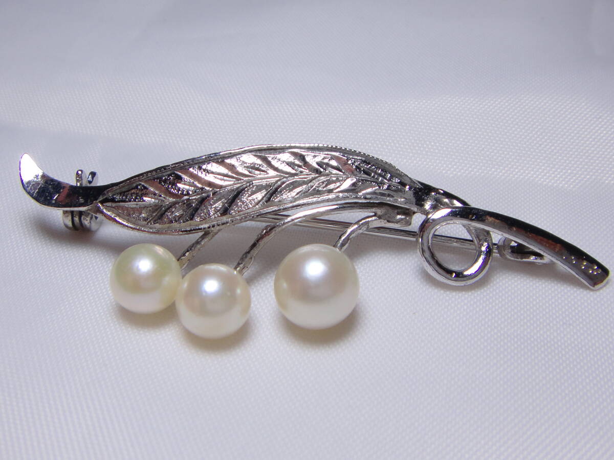 > アコヤ真珠 本真珠 本パール ブローチ 葉っぱ SILVER刻印有 ヴィンテージ アンティーク セレモニー 入学式 卒業式 B838