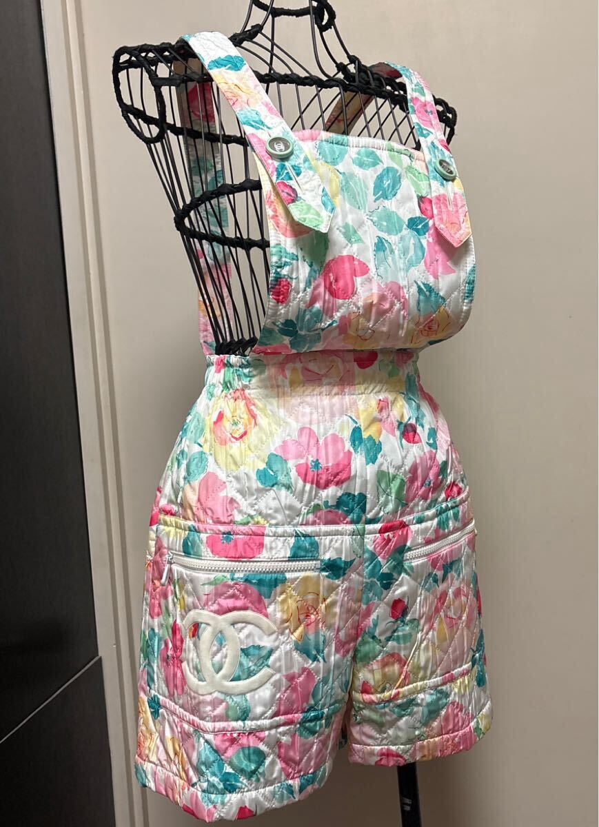 - CHANEL キルティングサロペットパンツ 花柄 新品未使用 サイズ38 正規品
