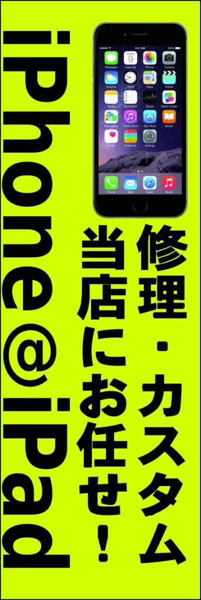 > のぼり旗「アイフォン修理 のぼり アイフォン 修理 iphone 黄緑 幟旗 スマートフォン修理 IPhone repair」何枚でも送料360円!