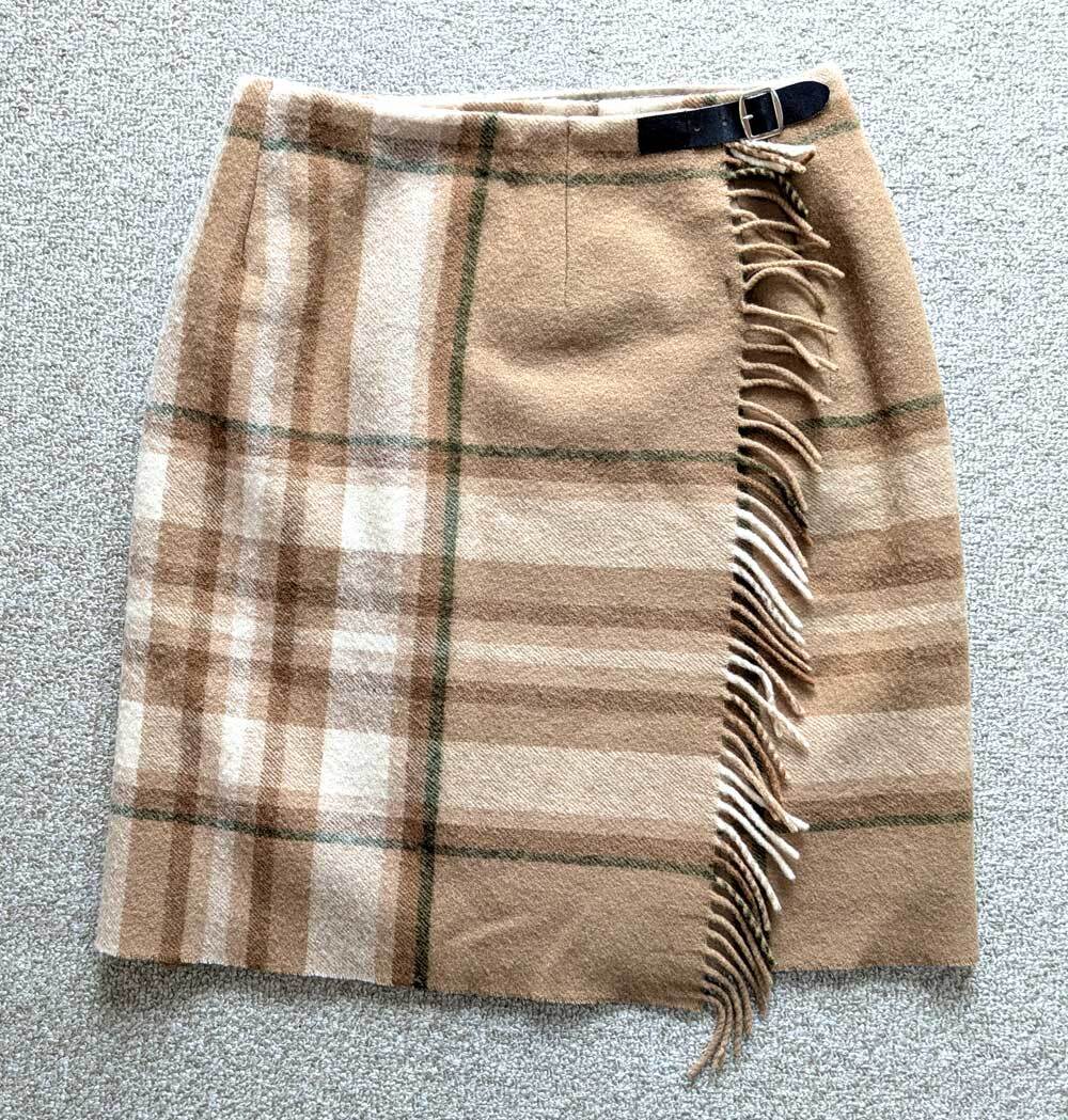 > ■no_093 SHIPS LADIES シップス レディース 巻きスカート チェック ブラウン系 フリンジ 100% WOOL ウール 裏地付 UK10 USA8 EUR36