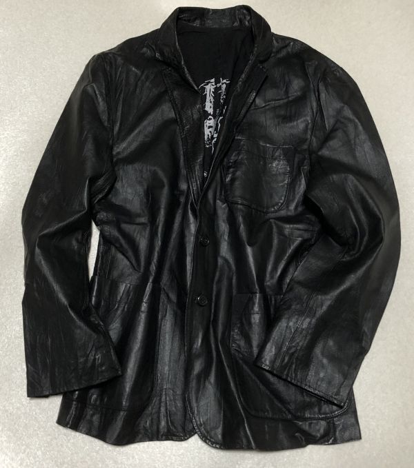 > $〜リピーター様特典割引有り◎希少別布◎JUNMEN◎リアルレザージャケット◎裏地アート柄