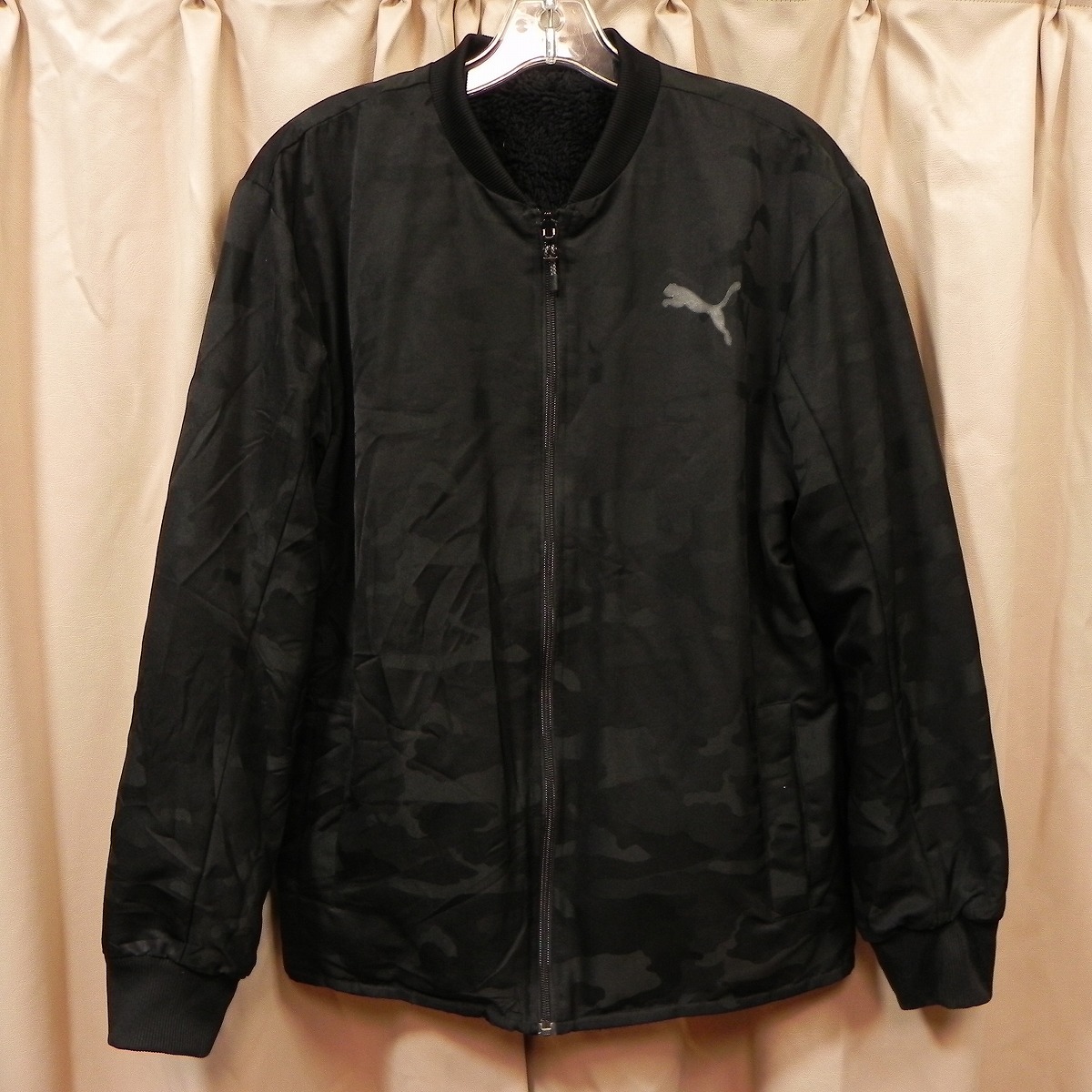 - PUMA プーマ M メンズ リバーシブル ジャケット ブルゾン 黒 ブラック 迷彩 ボア フリース 古着 ★a