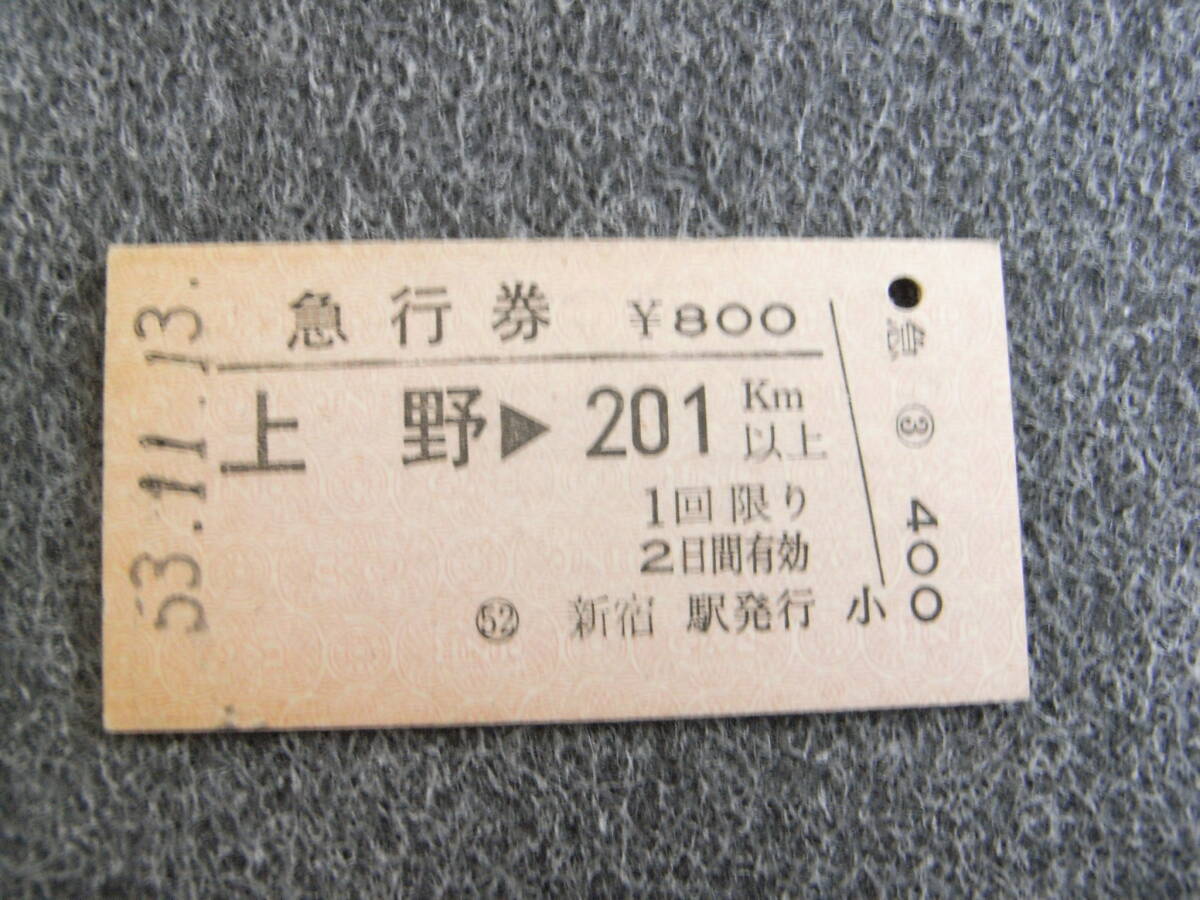 - 急行券 上野→201km以上 昭和53年11月13日 新宿駅発行 国鉄