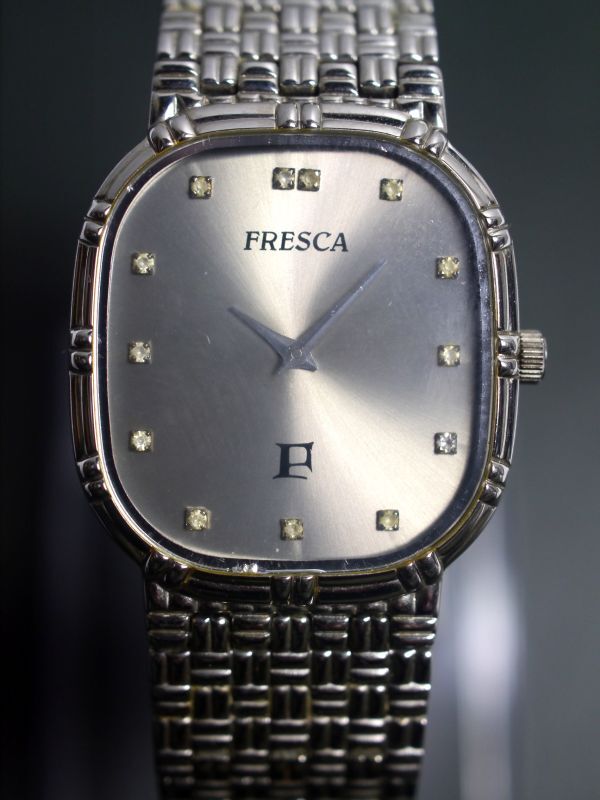 - フレスカ FRESCA クォーツ 2針 ダイヤモンド 純正ベルト 男性用 メンズ 腕時計 z698 稼働品