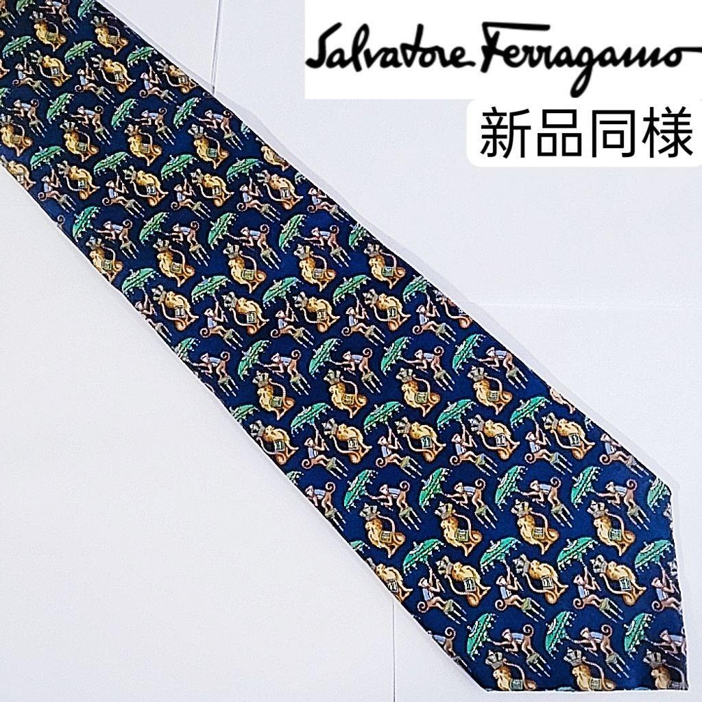 - 新品同様 サルヴァトーレ・フェラガモ ネクタイ ネイビー ビジネス イタリア製