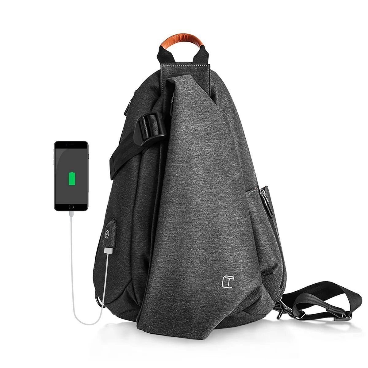 - 防水 ボディバッグ 大容量 かっこいい iPad mini収納可なショルダーバッグ USBポート付き斜めがけバッグ 軽量 ファッション☆2色選択/1点