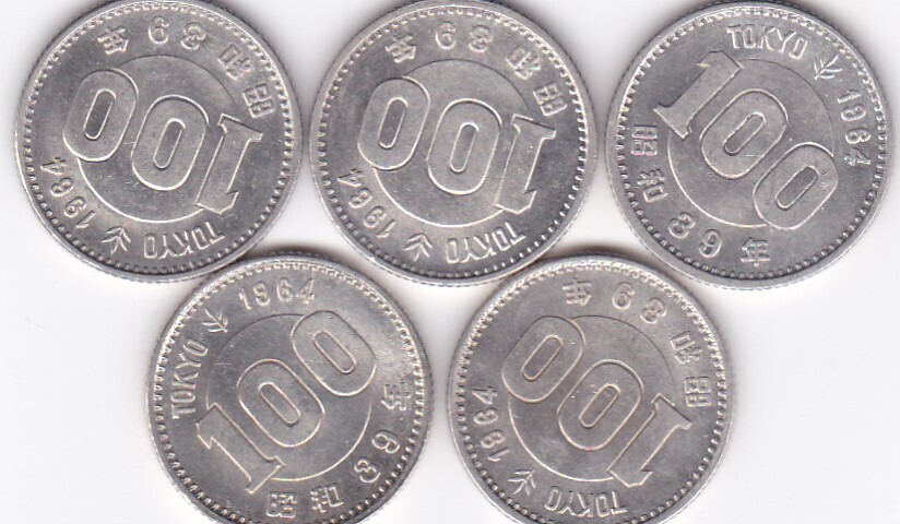 - ●●●東京オリンピック記念100円銀貨 昭和39年 5枚★